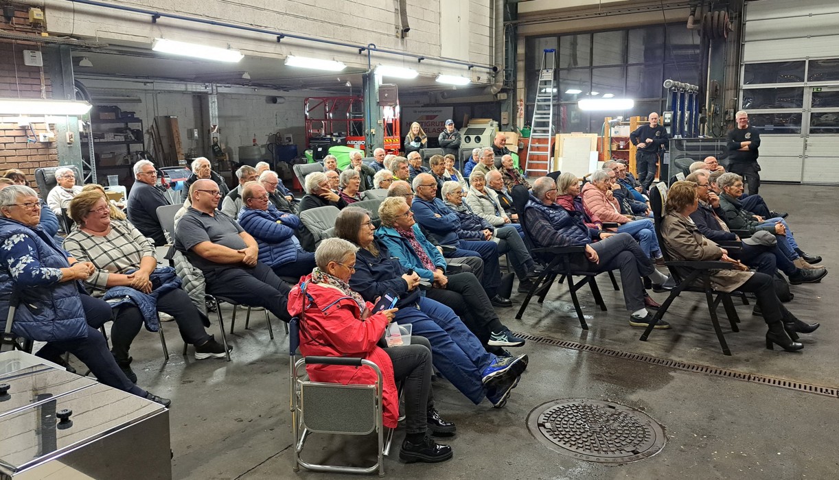 Det ble et vellykket medlemsmøte hos Bobil og Fritid i Rakkestad 10. november selv om redaktøren i invitasjonen hadde glemt å skrive "Ta med stol", men de tryllet fram stoler av ymse slag slik at alle de nesten 60 medlemmene som møtte opp fikk sitte.